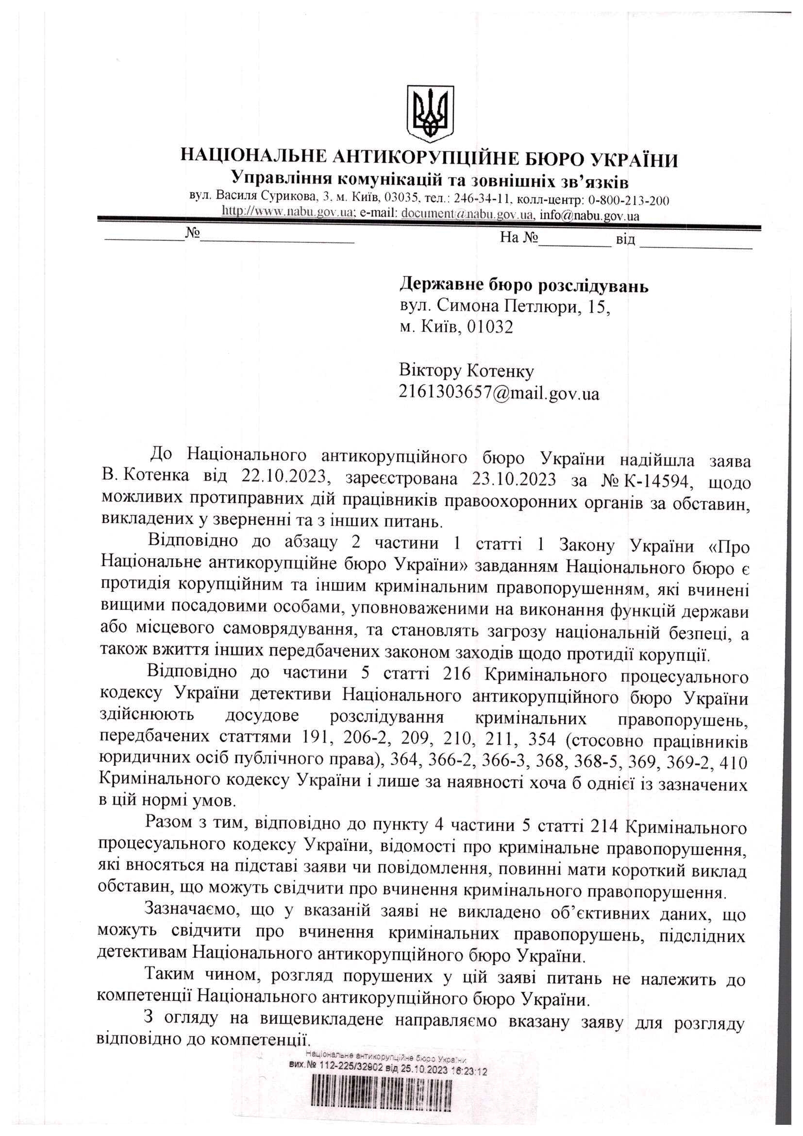 14 січня 2021р. громадянин України Віктор К. виклав суть справи про злочин та відправив звернення до Управління Житомирської СБУ, звідки воно помандрувало до ДБР у м.Житомирі