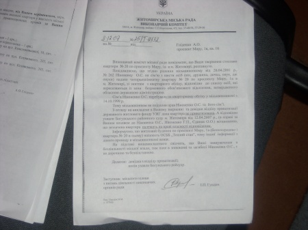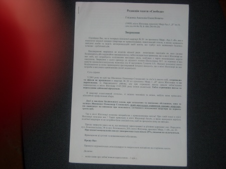 Постойте, постойте! Гниденко А.О? Да-да, тот самый! В своё время, представившись адвокатом, даже попытался использовать житомирскую газету «Свобода» в нечистоплотных махинациях по травле семьи несчастных чернобыльских переселенцев — квартира их переселенческая кому-то приглянулась! (кстати, глава семьи переселенцев погиб при весьма странных обстоятельствах) Так этот теперешний координатор НАСа кучу доносов настрочил в разные инстанции! Предлагаю читателям лишь некоторые фотокопии из архива, оригиналы находятся в редакции