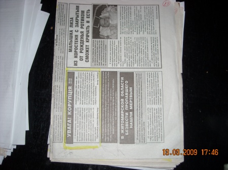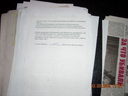 НА ПРОТЯЖЕНИИ НЕСКОЛЬКИХ ЛЕТ Я ПОДВЕРГА­ЮСЬ СИСТЕМАТИЧЕСКИМ ПРЕСЛЕДОВАНИЯМ, РЕПРЕССИЯМ, ДИСКРИМИНАЦИИ И ПРОВОКАЦИ­ЯМ СО СТОРОНЫ ПРЕДСТАВИТЕЛЕЙ ОРГАНОВ ГО­СУДАРСТВЕННОЙ ВЛАСТИ УКРАИНЫ. ЦИНИЧНО И БЕЗНАКАЗАННО НАРУШАЮТСЯ МОИ ПРАВА НА СВОБОДУ СЛОВА, СВОБОДУ ВЕРОИСПОВЕДАНИЯ, ПРАВО НА ТРУД. БЛАГОДАРЯ УСИЛИЯМ КОЛЛЕГ — ЖУРНАЛИСТОВ УДАЛОСЬ ПРЕДОТВРАТИТЬ ПО­ПЫТКУ ОРГАНИЗАЦИИ МОЕЙ ФИЗИЧЕСКОЙ ЛИК­ВИДАЦИИ. НЕ ПРЕКРАЩАЮТСЯ ГРУБЫЕ РЕП­РЕССИИ БАНДИТОВ ОТ ВЛАСТИ С ЦЕЛЬЮ ПРЕКРА­ТИТЬ МОЮ ЖУРНАЛИСТСКУЮ, ПРАВОЗАЩИТ­НУЮ, ПОЛИТИЧЕСКУЮ, ПРОПОВЕДНИЧЕСКУЮ И ПРЕДПРИНИМАТЕЛЬСКУЮ ДЕЯТЕЛЬНОСТЬ. Я ПОДВЕРГАЮСЬ РЕПРЕССИЯМ СО СТОРОНЫ УК­РАИНСКИХ ВЛАСТЕЙ ИЗ-ЗА ТОГО, ЧТО ПРОПАГАН­ДИРУЮ ДЕМОКРАТИЧЕСКИЕ ЦЕННОСТИ, ПРАВА И СВОБОДЫ, ПРОПОВЕДУЮ ХРИСТИАНСКИЕ ИСТИ­НЫ, ЗАНИМАЮСЬ ПРАВОЗАЩИТНОЙ ДЕЯТЕЛЬ­НОСТЬЮ, ПРОВОЖУ НЕЗАВИСИМЫЕ ЖУРНАЛИСТ­СКИЕ РАССЛЕДОВАНИЯ И ПУБЛИКУЮ В СРЕДС­ТВАХ МАССОВОЙ ИНФОРМАЦИИ КРИТИЧЕСКИЕ МАТЕРИАЛЫ, СВИДЕТЕЛЬСТВУЮЩИЕ О ФАКТАХ ЗЛОУПОТРЕБЛЕНИЙ В ОРГАНАХ ГОСУДАРСТВЕН­НОЙ ВЛАСТИ, ЯВЛЯЮСЬ АВТОРОМ ПУБЛИКАЦИЙ, ВЫЗВАВШИХ ШИРОКИЙ ОБЩЕСТВЕННЫЙ РЕ­ЗОНАНС. НАПРИМЕР, В ЕВРОПЕЙСКОМ СУДЕ ПО ЗАЩИТЕ ПРАВ ЧЕЛОВЕКА ПРИНЯТО К РАССМОТРЕНИЮ ДЕ­ЛО ПО МОЕМУ ИСКУ К ГОСУДАРСТВУ УКРАИНА. В МАТЕРИАЛАХ ДЕЛА — ССЫЛКИ НА ДЕСЯТКИ (!!!) ЗАДОКУМЕНТИРОВАННЫХ ЭПИЗОДОВ, СВИ­ДЕТЕЛЬСТВУЮЩИХ О ПРЕСЛЕДОВАНИЯХ И ПРО­ВОКАЦИЯХ СО СТОРОНЫ ВЛАСТЕЙ. В КИЕВСКОМ АДМИНИСТРАТИВНОМ АППЕЛЯЦИ­ОННОМ СУДЕ ОЖИДАЕТ РАССМОТРЕНИЯ УНИ­КАЛЬНЕЙШЕЕ ДЕЛО О ПОПЫТКЕ БАНДИТОВ, ОКО­ПАВШИХСЯ В ОРГАНАХ ИСПОЛНИТЕЛЬНОЙ ВЛАС­ТИ, ТАЙНО ЛИКВИДИРОВАТЬ ХРИСТИАНСКУЮ ЦЕРКОВЬ (!!!), ПАСТОРОМ КОТОРОЙ Я ЯВЛЯЮСЬ. В МАТЕРИАЛАХ ДЕЛА — СЕНСАЦИОННЫЕ ДО­КУМЕНТЫ, СВИДЕТЕЛЬСТВУЮЩИЕ О ТЩАТЕЛЬ­НО СПЛАНИРОВАННОЙ, НО ТЕРПЯЩЕЙ ПРОВАЛ ОПЕРАЦИИ ПО УНИЧТОЖЕНИЮ ЦЕРКВИ. МАФИЯ, ИСПОЛЬЗУЯ КОРРУМПИРОВАННОЕ РУ­КОВОДСТВО ОРГАНОВ ГОСУДАРСТВЕННОЙ ВЛАС­ТИ, ПЫТАЛАСЬ НЕОДНОКРАТНО ЛИКВИДИРО­ВАТЬ ИЗДАВАЕМУЮ МНОЙ ГАЗЕТУ «СВОБОДА», ОДНАКО И ЭТИ ПОПЫТКИ ДАВЛЕНИЯ НА ПРЕССУ НЕ УВЕНЧАЛИСЬ УСПЕХОМ И ПРИЗНАНЫ НЕ­ЗАКОННЫМИ. Я ПЕРЕЧИСЛИЛ ЛИШЬ ОТДЕЛЬНЫЕ ЭПИЗОДЫ ИЗ МНОГИХ. ВСЕМ ЖЕЛАЮЩИМ ГОТОВ ПРЕДОСТАВИТЬ ПОДТВЕРЖДАЮЩИЕ ДОКУМЕНТЫ ДЛЯ ОЗНАКОМ­ЛЕНИЯ В НАСТОЯЩЕЕ ВРЕМЯ, В СВЯЗИ С ПУБЛИКАЦИЕЙ НА ОФИЦИАЛЬНОМ САЙТЕ ПРАВОЗАЩИТНОГО ЦЕНТРА СВОБОДА, В ДРУГИХ СРЕДСТВАХ МАССО­ВОЙ ИНФОРМАЦИИ РЕЗОНАНСНЫХ МАТЕРИАЛОВ ПРОВЕДЁННЫХ МНОЮ ЖУРНАЛИСТСКИХ РАСС­ЛЕДОВАНИЙ, В ТОМ ЧИСЛЕ И О ФАКТАХ, ИМЕ­ЮЩИХ ПРЯМОЕ ОТНОШЕНИЕ К УБИЙСТВУ ЖУР­НАЛИСТА ГЕОРГИЯ ГОНГАДЗЕ, ПРОТИВ МЕНЯ СНОВА РАЗВЁРНУТА ШИРОКОМАСШТАБНАЯ ОПЕ­РАЦИЯ, В КОТОРОЙ ЗАДЕЙСТВОВАНЫ ВСЁ ТЕ ЖЕ ПРЕДСТАВИТЕЛИ ПРАВООХРАНИТЕЛЬНЫХ ОРГА­НОВ, МИЛИЦИИ, НАЛОГОВОЙ АДМИНИСТРАЦИИ, ПРОКУРАТУРЫ И ДАЖЕ ... ГОСУДАРСТВЕННОЙ СЛУЖБЫ ОХРАНЫ И ГОСУДАРСТВЕННОГО КО­МИТЕТА УКРАИНЫ ПО ВОПРОСАМ РЕГУЛЯТОР­НОЙ ДЕЯТЕЛЬНОСТИ И ПРЕДПРИНИМАТЕЛЬ­СТВА!!! НАВЕРНОЕ, В ЖИТОМИРЕ УЖЕ НЕ ОСТА­ЛОСЬ НИ ОДНОЙ ГОСУДАРСТВЕННОЙ СЛУЖБЫ, КОТОРУЮ БЫ МАФИЯ НЕ ИСПОЛЬЗОВАЛА ДЛЯ НАПАДЕНИЙ. ПРИЧЁМ, ЦЕЛЬ ОЧЕРЕДНОЙ ПРОВОКАЦИИ ДАЖЕ НЕ СКРЫВАЕТСЯ – ЭТО МОЯ ЛИКВИДАЦИЯ! МЕ­ТОДАМИ РЕПРЕССИЙ 37 – ГО ГОДА — ПУТЁМ ПОД­ВЕДЕНИЯ ПОД ТАК НАЗЫВАЕМУЮ «РАССТРЕЛЬ­НУЮ СТАТЬЮ» — В ЭТОТ РАЗ МНЕ ПЫТАЮТСЯ ИНКРИМИНИРОВАТЬ НИ МНОГО НИ МАЛО, КАК ОКАЗАНИЕ СОПРОТИВЛЕНИЯ ГОСУДАРСТВЕН­НЫМ ОРГАНАМ ВЛАСТИ В ОСУЩЕСТВЛЕНИИ ИМИ СВОИХ ПОЛНОМОЧИЙ! ОКАЗЫВАЕТСЯ, Я, ЗАЩИЩАЯ УКРАИНСКИХ ГРАЖ­ДАН И ПРЕДПРИНИМАТЕЛЕЙ ОТ НАПАДЕНИЙ БАН­ДИТОВ ИЗ ОРГАНОВ ВЛАСТИ … ОКАЗЫВАЮ ТЕМ СА