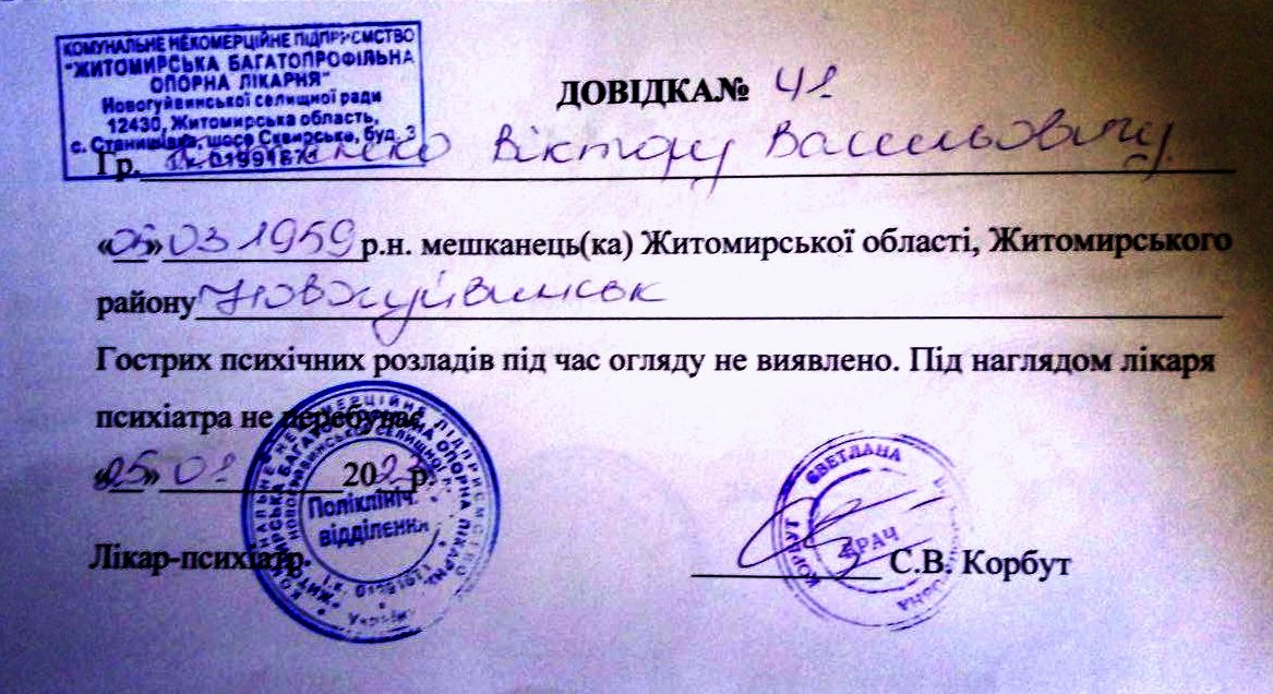 Житомир. Речь идёт о том, как по заказу заинтересованных лиц службами Житомирского областного управления юстиции был подделан документ о якобы большой денежной задолженности гражданина Украины Виктора Котенко, предпринимателя, руководителя религиозной организации, независимого журналиста — расследователя, основателя и редактора местной газеты «Свобода», раздражавшей пророссийских функционеров различных служб. Незаконность преследования украинского патриота, активного участника всех Майданов своим решением подтвердил Европейский суд по правам человека в 2019 году. Но это не остановило негодяев. Высокая палата мошенников Верховного суда (под управлением одиозного коррупционера Князева) после долгих проволочек и закулисных договорняков закрыла дело за давностью, посчитав, что можно игнорировать и не выполнять решения ЕСПЧ, что побудило подонков из структур министерства юстиции, попутно извратив (подменили ответчика !) и обгадив решение Евросуда, взыскивать мнимые «долговые» денежные средства из пенсии Виктора. Но времена меняются. Жирную точку летом 2023 года в этом деле поставили Богунский районный суд Житомира (судья Кузнецов), апелляционный суд Житомирской области и Верховный суд, в очередной раз подтвердив не нуждающееся в подтверждении решение ЕСПЧ и фиктивность т.н. «долга», что совсем не помешало оборотням оставаться на своих постах, продвигаться по службе, жировать и гадить за счёт налогоплательщиков.